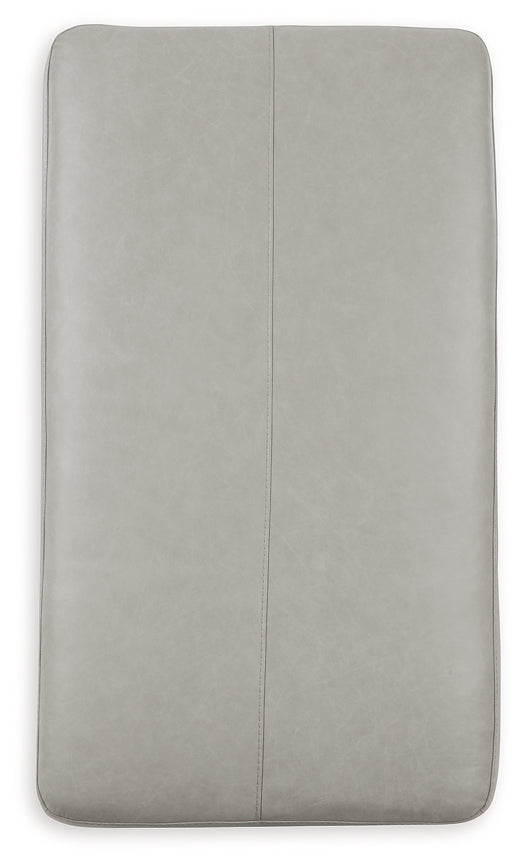 Keen on crisp, contemporary design? Adore the pleasure of leather? Look no further. This ottoman satisfies on every level. Richly textured and decadently supple, the cushion is wrapped with expertly matched leather and faux leather upholstery in an on-trend neutral tone. The ottoman's generous scale and clean-lined profile complete its simply chic appeal.